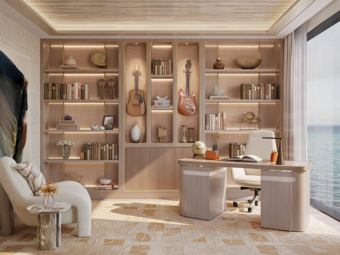 Katharine Pooley’s studio’s portfolio ranges from yachts, private residences, hospitality and commercial spaces globally, to collections of bespoke furniture, lighting and decorative Objets d’Art. Aboard ULYSSIA, residents will have the opportunity to collaborate with Katharine Pooley to bring their individual visions to life in a space that exudes an oasis of calm, warmth and serenity.